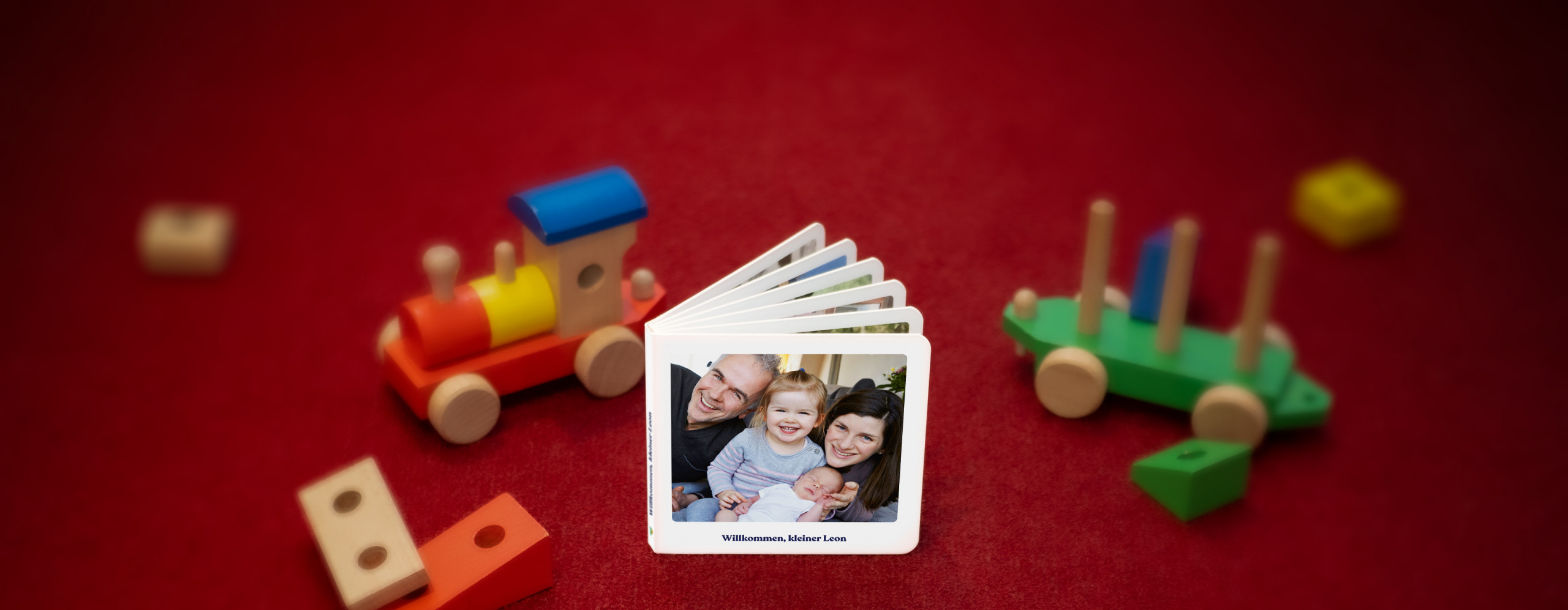 Our cardboard book configurator is very easy to use: Select format and design template, add images and text, upload, done.